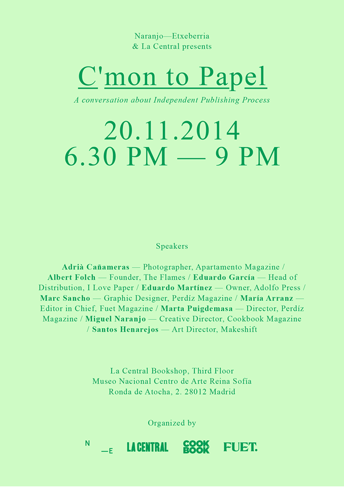 * Moderadora en C’Mon to Papel, una conversación sobre la edición independiente en La Central del Reina Sofía, Madrid.