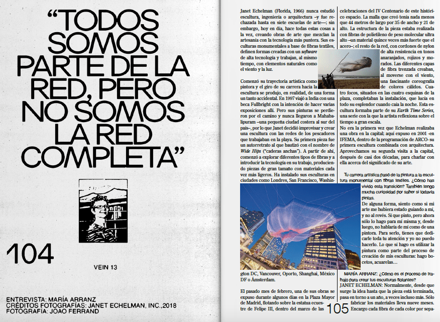 * Entrevista con la artista Janet Echelman, Vein Magazine.