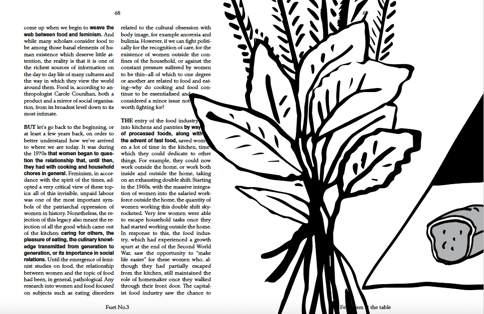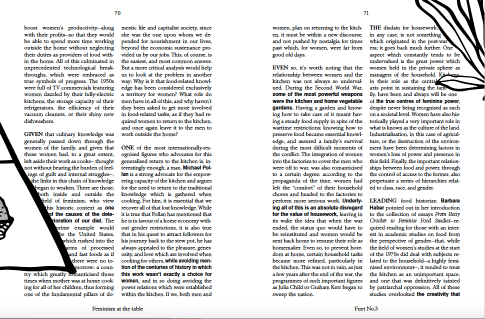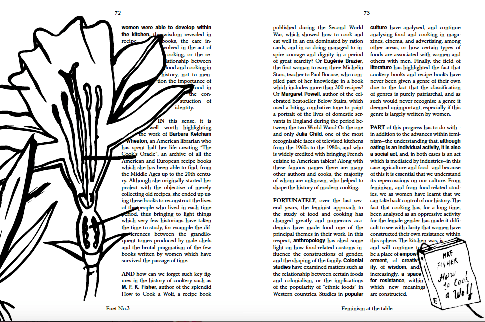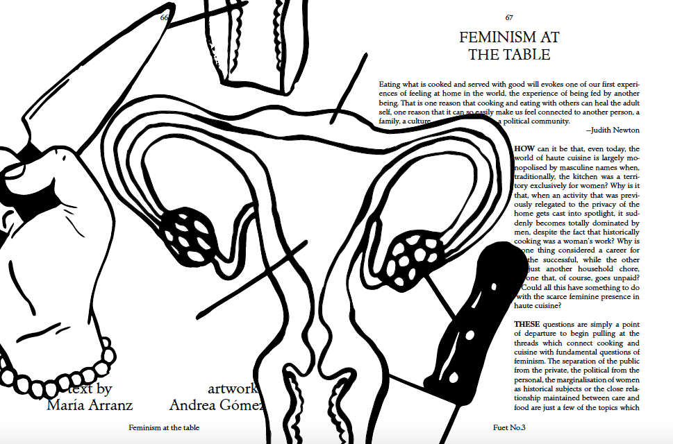 * Feminism at the table, FUET Magazine #3 — Politics (texto sobre las relaciones entre cocina y feminismo).
