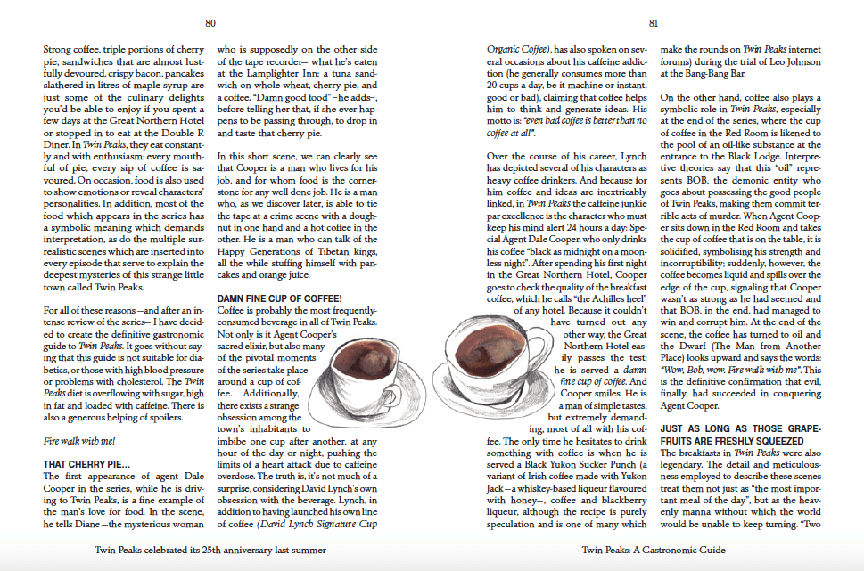* Twin Peaks: A gastronomic guide, FUET Magazine #2 — Icons (texto sobre la comida que aparece en la serie Twin Peaks).